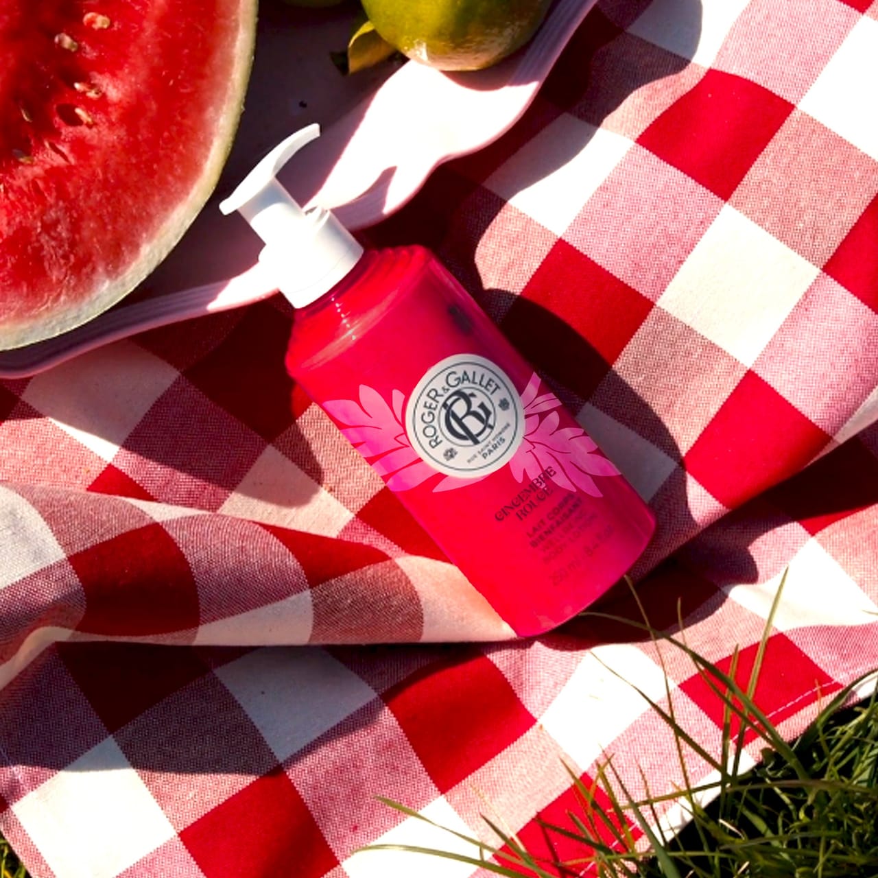 Onstuimig, smakelijk, sprankelend, Gingembre Rouge grijpt ons met zijn overvloedige energie en doet ons sidderen van plezier. De Gingembre Rouge Weldadige Lichaamsmelk, verrijkt met natuurlijk gemberextract met energieke eigenschappen en karitéboter, voedt de huid en zorgt voor een 24-uurs hydratatie. De lichte textuur wordt onmiddellijk opgenomen en laat uw huid gehydrateerd en heerlijk geparfumeerd met de fruitige en sensuele noten van Gingembre Rouge.