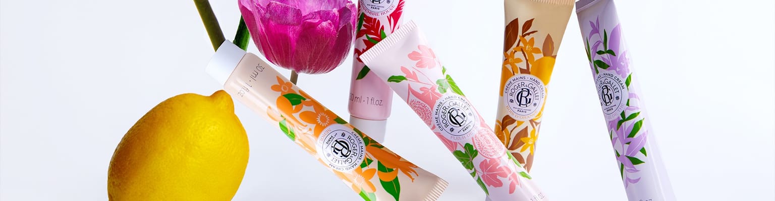 Een verkwikkend briesje, een troostend aftreksel, een schaduwrijk dutje, een euforisch brouwsel of een vitamineverrijkende slok: de collectie Roger&Gallet Weldadige Handcrèmes heeft van nature heilzame deugden voor lichaam en geest. Verrijkt met natuurlijke plantenextracten met energiserende of ontspannende eigenschappen, karitéboter en natuurlijk zoete amandelextract, voeden en beschermen ze de huid op milde wijze.